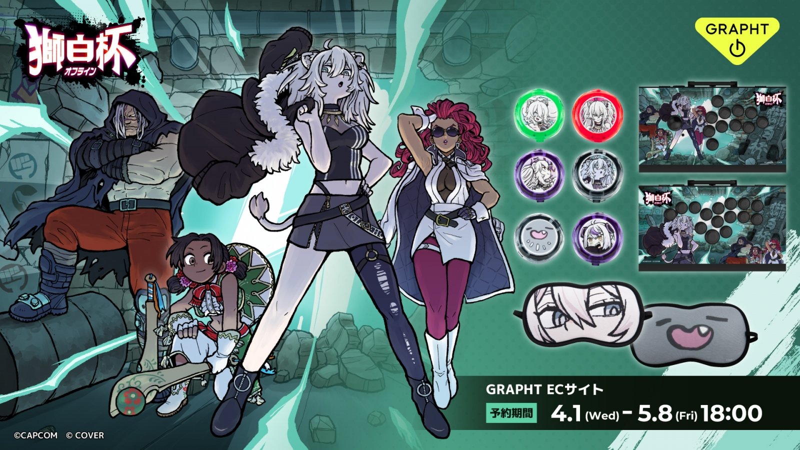 - VTuber「獅白ぼたん」が開催する「獅白杯 - オフライン -」のスペシャルコラボアイテムが、GRAPHT公式ECサイトにて2026年4月1日(水)予約受付中。コラボアイテムには、アーケードコントローラー『iO』Mサイズ用の「獅白杯 - オフライン -」キービジュアル上パネル(14,300円)、24φ交換ボタン全6種(各1,650円)、リバーシブルアイマスク(1,980円)が含まれる。 予約期間は2026年5月8日(金)18:00まで。イベント当日の2026年4月11日(土)・12日(日)は横浜BUNTAIにて会場物販も実施予定。 <以下、ニュースリリースより> GRAPHT、「獅白杯 - オフライン -」スペシャルコラボアイテムを4月1日よりオンライン予約開始 MSY株式会社(本社:東京都渋谷区、代表取締役:秋山 昌也)は、「好きを語れる人を増やす」をミッションに掲げるブランド『GRAPHT』のプロダクトやサービスを通じて、あらゆるクリエイターとコミュニティの関係性を創ることを目指しています。『GRAPHT』はこの度、ホロライブ所属のVTuber「獅白ぼたん」さんが開催する「獅白杯 - オフライン -」に協賛いたします。本イベントは横浜BUNTAI(神奈川県横浜市)にて「獅白杯4th」(Day1:4月11日)、「獅白杯オフライン〜東西対抗戦〜」(Day2:4月12日)の2日間にわたって開催される特別なイベントです。『GRAPHT』も本イベントのために用意したスペシャルアイテムを携え、ご来場の皆さんとともに2日間を盛り上げてまいります。 獅白杯 - オフライン - × Team GRAPHT スペシャルアイテムとして、『GRAPHT REMIXERS iO』と「獅白杯 - オフライン -」がコラボレーションした『iO 獅白杯 - オフライン - Edition』上パネル(レバー/レバーレス、Mサイズ対応)をはじめ、三和電子製24φアーケードコントローラー用交換ボタンに歴代「獅白杯」のキービジュアルやラプラス・ダークネス、SSRBをあしらった全6種の2WAYコラボボタン、さらにリバーシブルアイマスクをラインアップします。これらのアイテムは、GRAPHT公式ECサイト(GRAPHT OFFICIAL STORE)にて2026年4月1日(水)12:00〜5月8日(金)18:00の期間、予約を受け付けています。イベント当日は、ボタン全6種およびリバーシブルアイマスクの会場物販を行います。会場物販はイベントチケットをお持ちでない方もご利用いただけますが、入場可能時間などの詳細はイベント公式からの案内をご確認ください。会場でのお支払いはキャッシュレス決済のみとなります。各商品の在庫はDay1・Day2それぞれに数量を分けてご用意し、各日売り切れ次第販売終了となりますので、あらかじめご了承ください。●『獅白杯 - オフライン - × Team GRAPHT』特設サイトhttps://store.grapht.tokyo/blogs/events/shishiro-cup-offlineスペシャルコラボアイテム 『iO 獅白杯 - オフライン - Edition』-コラボオリジナル上パネル ※予約販売のみ 『iO 獅白杯 - オフライン - Edition』上パネル単品(レバー/レバーレス、Mサイズ対応) セミオーダー&組み立て式、カスタムアーケードコントローラー『iO(イオ)』Mサイズの交換用パネルに、「獅白杯 - オフライン -」キービジュアルデザイン(レバー/レバーレス)が登場。『iO』のアルミニウム合金製の上パネルに「獅白杯 - オフライン -」のキービジュアルをプリントした特別感のあるデザインです。そのほかのアケコンパーツも同時注文可能です。すでに『iO』Mサイズをお使いいただいている方は交換パネルとしてお楽しみいただけるほか、アートとして飾って楽しむのもおすすめです。※本製品はGRAPHT ECサイトでの予約販売のみとなり、イベント当日の会場販売はございません。『iO 獅白杯 - オフライン - Edition』上パネル(レバー/レバーレス)単品 製品仕様 価格 レバー/レバーレス 14,300円(税込) 外形寸法 W345×D201×H26(mm) 素材 アルミニウム 対応 『iO』Mサイズに対応。(その他のサイズには対応不可となります) 付属品 本体×1 アケコンを構成するパーツとしての付属品:マグネット×2、シリコンリング(Φ24)×14、シリコンリング(Φ30)×1、M4*6 皿ネジ×2 保証期間 初期不良のみ 『iO』― 自分で組み立てる。プレースタイルとともに最適化するカスタムアーケードコントローラー 『iO(イオ)』は、自分好みのゲーミングデバイスを“創造”するカスタムオーダーブランド『GRAPHT REMIXERS』の第1弾製品で、自分で好みのパーツを選び組み立てる、セミオーダー&組み立て式のアーケードコントローラーです。どなたでも一から組み立てられるシンプルでメンテナンスフリーな設計に加え、組み立て後もパーツ交換を繰り返すことで、理想のデバイスを追求し続けることが可能です。組み立てオプションサービスもご用意しています。●GRAPHT REMIXERS iO 特設サイトhttps://store.grapht.tokyo/blogs/events/io-grapht-remixers 『iO』組み換えイメージ ストラップにもなる2WAY仕様のアーケードコントローラー交換ボタン 全6種 昨年の「獅白ぼたんとクリスマス闘night Ⅱ」でもご好評いただいた三和電子製アケコン用交換ボタンが、「獅白杯 - オフライン -」コラボ特別デザインとして新たに6種類登場します。今回はレバーレスでも使いやすい24φのサイズのボ