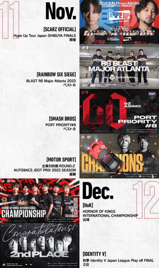 株式会社XENOZ(本社:神奈川県川崎市、代表取締役:友利 洋一)は、運営するesportsチーム「SCARZ」が、2023年の大会競技成績や、開催イベントをまとめたコンテンツを公開いたしました。