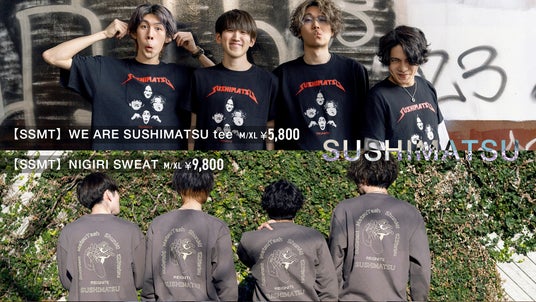 『すしまつ』メンバーもお気に入りの当コラボアパレルは、この度オンラインショップでの取り扱いを開始いたしました。ぜひ一度ご覧ください。