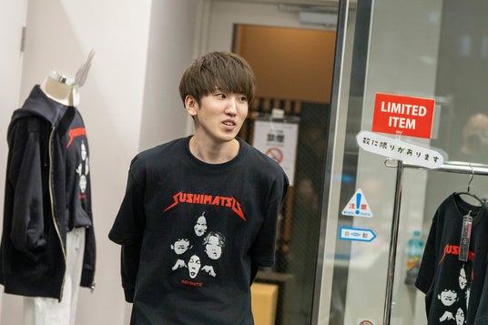 『【SSMT】WE ARE SUSHIMATSU tee』を着用したMatsuTash選手