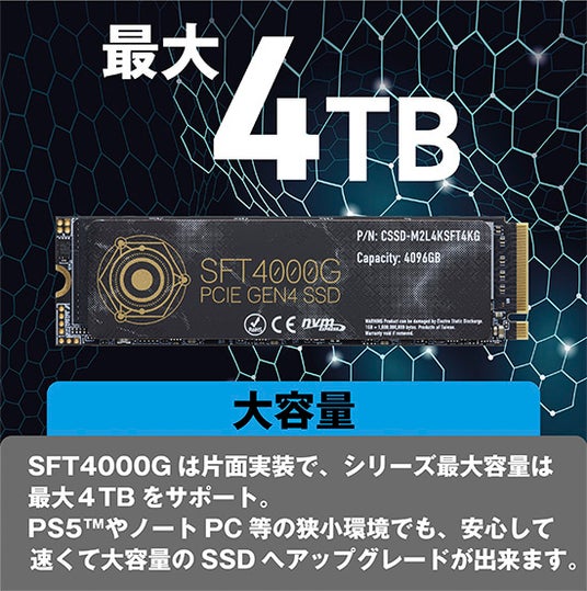 【PS5にも◎】CFD販売から最大4TB PCIe Gen4x4接続 シーケンシャルリード最大4,400MB/sのM.2 NVMe SSD「SFT4000Gシリーズ」が発売
