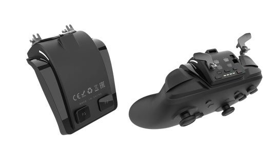 背面ボタンや拡張バッテリーなどカスタマイズ性の高いアダプターで、専用アプリで細かい設定が可能になるとのこと。