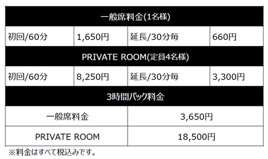 「POKÉMON CARD LOUNGE」ご利用料金表