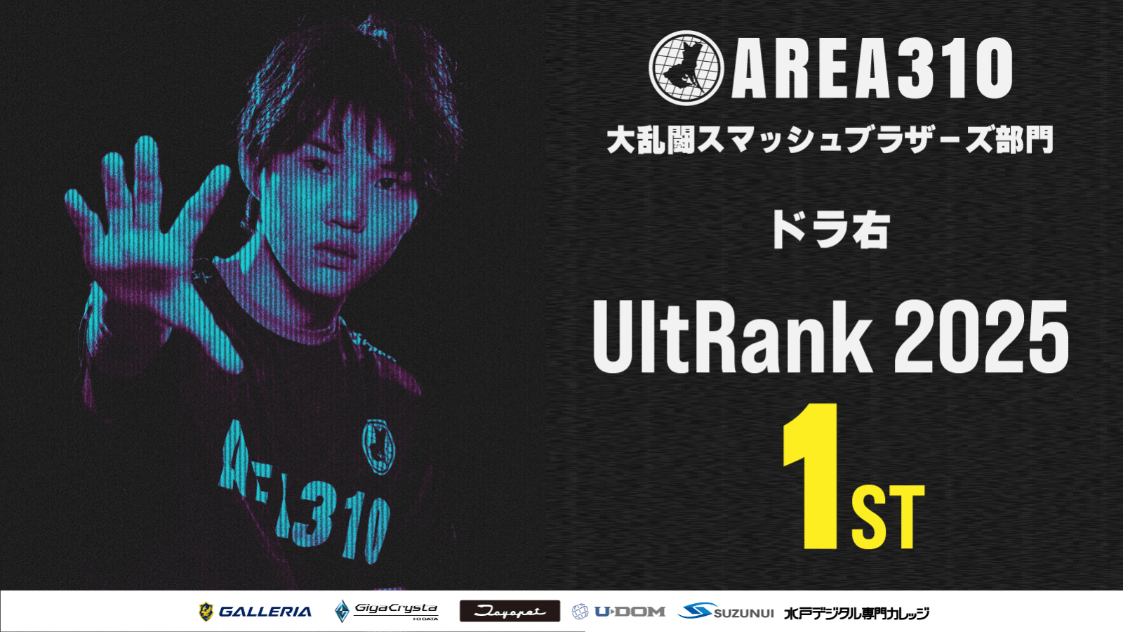 - 茨城県を拠点とするeスポーツチーム「AREA310」は、スマブラ部門所属のドラ右選手が、2025年の世界ランキング「UltRank」にて世界1位を獲得したと発表した。兵庫県出身の16歳である同選手は、国内外の大会で安定した成績を残し、史上最年少での年間王者という快挙を成し遂げた。<以下、ニュースリリースより>茨城県水戸市から発足したeスポーツチーム「AREA310」スマブラ部門のドラ右選手が2025年の世界ランク1位 茨城県から発足したeスポーツチーム「AREA310」の大乱闘スマッシュブラザーズ(以下、スマブラ)部門に所属するドラ右選手が、競技シーンにおける世界ランクである「UltRank」にて、2025年世界1位を獲得しました。 「UltRank」(旧LumiRank)は、世界各地で開催されるオフライン大会の成績をもとに算出される、スマブラ競技シーンを代表するプレーヤーランキングです。ドラ右選手は、2025年上半期の中間発表で1位に輝き、その後も安定した成績を残し続け、勢いを落とすことなく通年ランキングでもトップの座を守り抜きました。そして同時に、世界ランク1位の史上最年少記録となりました。https://medium.com/@ultrankssb/ultrank-2025-10-1-2819c273db35 日頃よりドラ右選手ならびにAREA310を応援してくださっているファンの皆様に、心より感謝申し上げます。 皆様からの温かいご声援が、選手の挑戦を支える大きな力となっています。 今後とも変わらぬ応援を賜りますよう、よろしくお願いいたします。ドラ右(AREA310 スマブラ部門) 兵庫県出身、16歳の若手プレーヤー。 2023年8月、AREA310スマブラ部門発足と同時に加入。 2025年は初めての海外大会優勝、国内最大規模の大会では16連敗していたミーヤー選手に初勝利を収めて優勝、さらに日本eスポーツアワード U18部門受賞など、ドラ右選手にとって大きな飛躍の年となりました。X:https://x.com/doramigi_1008<2025年の主な実績> ・世界ランク LumiRank(現UltRank):2025年 1位 ・日本eスポーツアワード2025:Under18 eスポーツプレーヤー部門 受賞 ・LVL UP EXPO 2025(アメリカ/ラスベガス):優勝 ・篝火#14:優勝 ・Supernova 2025(アメリカ/シャンティリー):準優勝 ・Riptide 2025(アメリカ/サンダスキー):準優勝 ・篝火#13:5位タイ ・マエスマ'TOP#1:準優勝AREA310 茨城県を拠点とするeスポーツチーム。 2022年2月22日に、eFootball部門のちょぶりが代表となり発足した。 「茨城から世界へ」のスローガンを掲げ、世界の舞台で戦うチームを目指しながら、 eスポーツを通じた地域の活性化、DX人財の育成に力を入れている。HP:https://area310-gg.com/ X:https://x.com/AREA310_GG YouTube:https://www.youtube.com/@AREA310_GG<スポンサー募集中>AREA310では活動をご支援いただける企業・団体様を募集しております。 興味のある企業・団体様がいらっしゃいましたら、ご連絡いただけますと幸いです。 チームの詳細や、ご支援に対するメリット等についてご説明いたします。 何卒よろしくお願い申し上げます。■お問い合わせ AREA310(株式会社アプリシエイト) 担当者:鶴見 佑希 MAIL:esports@all-appreciate.com TEL:029-350-1730