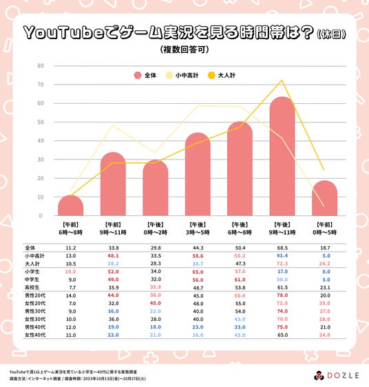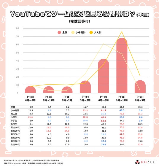 ゲーム実況の視聴時間帯は、平日では「午後6時~8時」「午後9時~11時」に集中