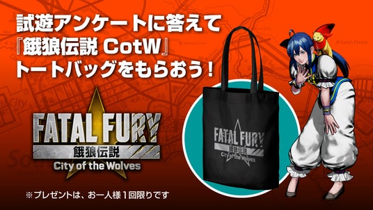 『餓狼伝説 CotW』の試遊アンケートにお答えいただいた方に、オリジナルトートバッグをプレゼント。試遊後は、アンケートにご協力ください。
