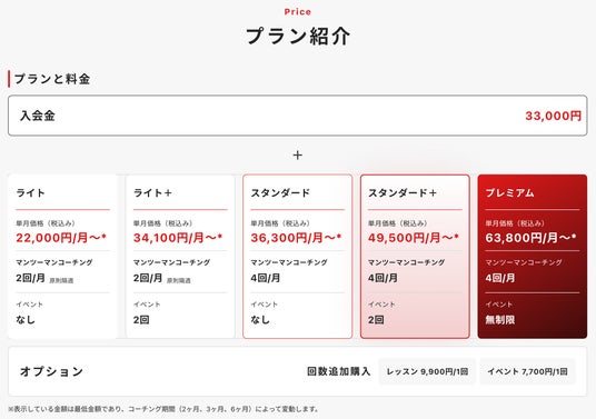 また、マンツーマンコーチの無料体験会や1万円割引キャンペーンも実施中だ。