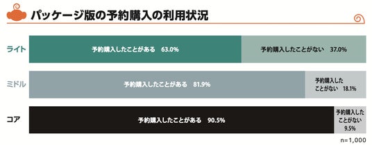 ユーザー層での割合の差はありますが、すべての層で予約購入経験があるという回答が多数を占めており、特にミドル層/コア層では、ほぼすべてのユーザーが欲しいゲームを予約して購入するという選択肢が検討されている状況が見えます。