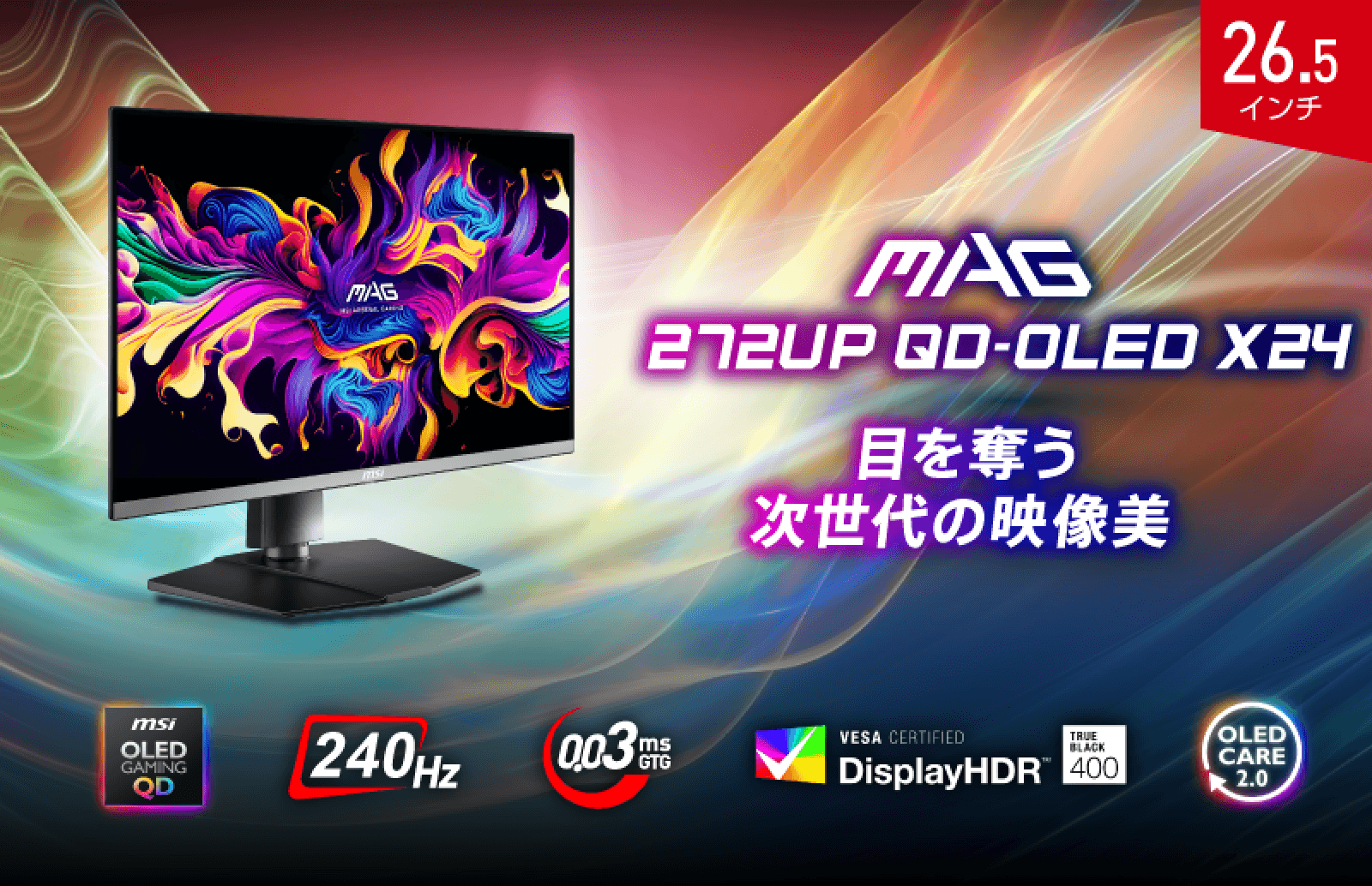 - 【レビュー】26.5インチに凝縮された4K・166ppiの超高精細―QD-OLED搭載ゲーミングモニター MSI「MAG 272UP QD-OLED X24」
