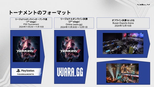 「Busan TEKKEN Match-up」は、PlayStation(R)5(PS5(R))を使用した『鉄拳8』をプレイしている選手なら誰でも参加できる、オープンで世界規模のコミュニティイベント。オンライン予選の開催地域は日本、韓国、アメリカ、ヨーロッパおよびその他の地域の4カ所。