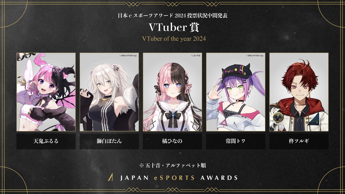 一般社団法人日本eスポーツ連合(会長:早川英樹 以下、JeSU)は、2025年1月15日に開催する、「日本eスポーツアワード2024」のファン投票について、中間結果をお知らせします。ファン投票は9月1日より受付を開始しており、約2か月間の集計結果となります。