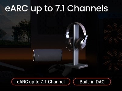 EX381Uでは、HDMI eARCに対応し、Dolby AtmosやDTSといった立体音響技術に対応することで、7.1chサラウンドサウンドを最大限に楽しむことができます。また、米ESS Technology社の高性能SABRE DACを内蔵しており、ノイズを低減しつつ臨場感ある高音質サウンドを提供します。さらに、シネマやサラウンドなどのオーディオモードが用意され、ヘッドホン使用時でも没入感のある音響体験を実現します。