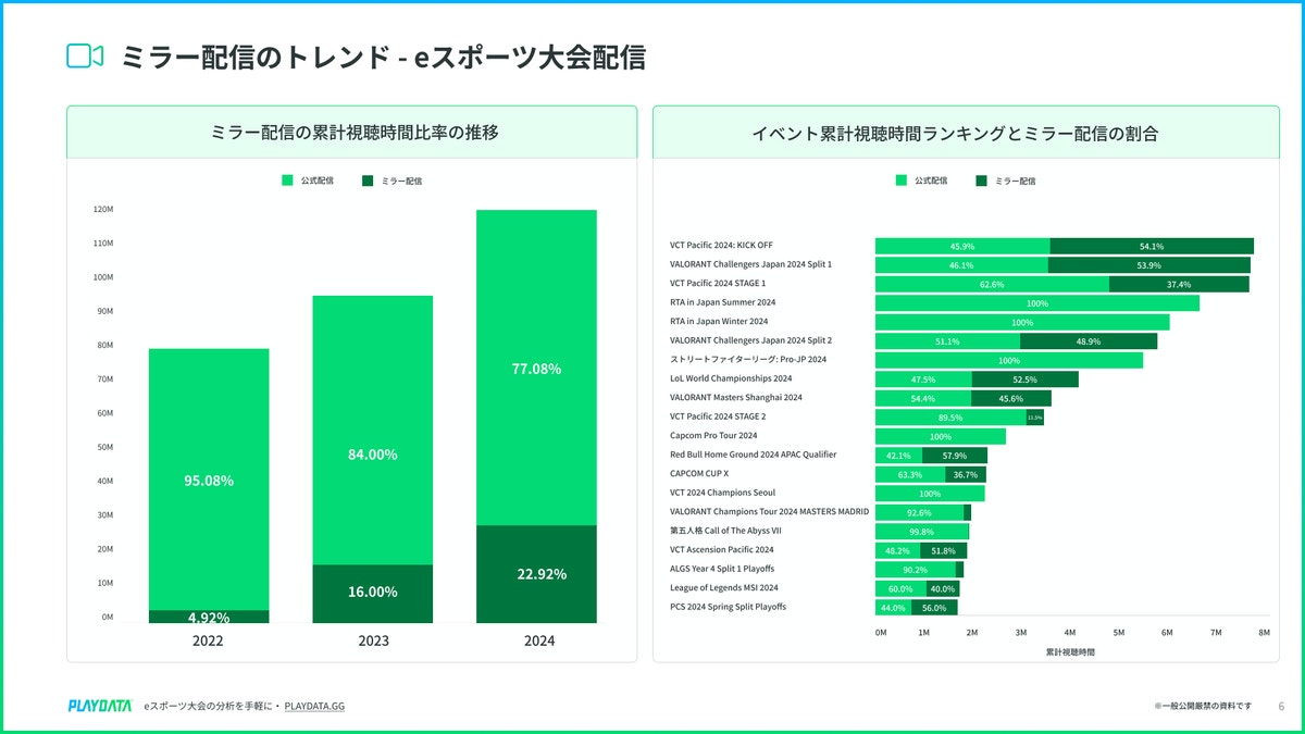 株式会社プレイブレーン(本社所在地:東京都品川区 以下、プレイブレーン)は、eスポーツ配信データ分析サービス「PLAYDATA」通じて計測されたデータを基に、2024年1月1日から12月31日の期間における国内eスポーツ大会配信の年間トレンドレポートの無料配布を開始しました。
