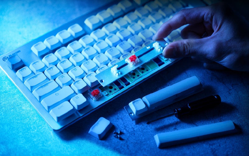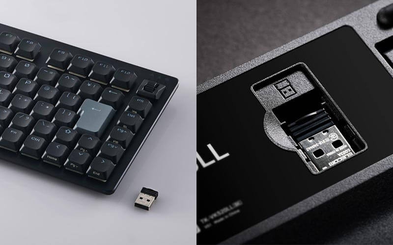 赤軸スイッチ採用で、ホットスワップにも対応しているため互換スイッチに換装可能。また、スペースバーの長さを2パターン使い分けることができる。