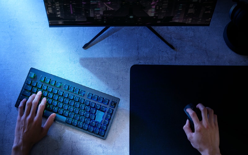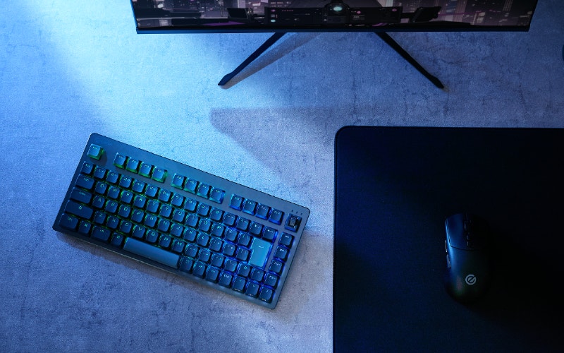 FPSなど高速な指の動きが求められるゲームに最適化された75%メカニカルゲーミングキーボードのロープロファイルモデルです。キーピッチはフルキーボードサイズを維持しつつコンパクト化を実現し、マウス操作のスペースも確保しています。ロープロファイルスイッチを採用することで、連打や再入力が速くなり、手首への負担を軽減します。日本語配列を採用し、ゲームプレーとテキスト入力の両方で快適さを提供します。接続方法は、有線、Bluetooth®、2.4GHz無線の3種類に対応しています。