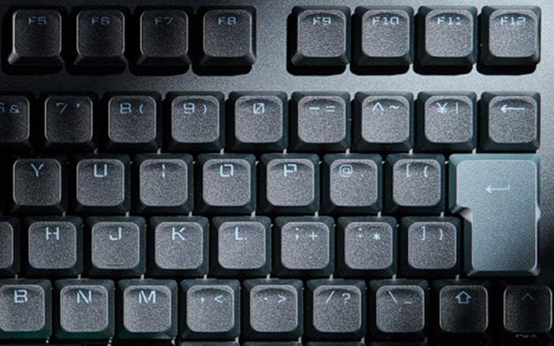ゲームプレー中の各指のキーストローク角度を研究し尽くし、高速で打ち込んでも指がずれないようキートップをラウンドさせました。Z~Mキーは左手親指での操作に最適化した特殊なアシンメトリー形状を採用しています。