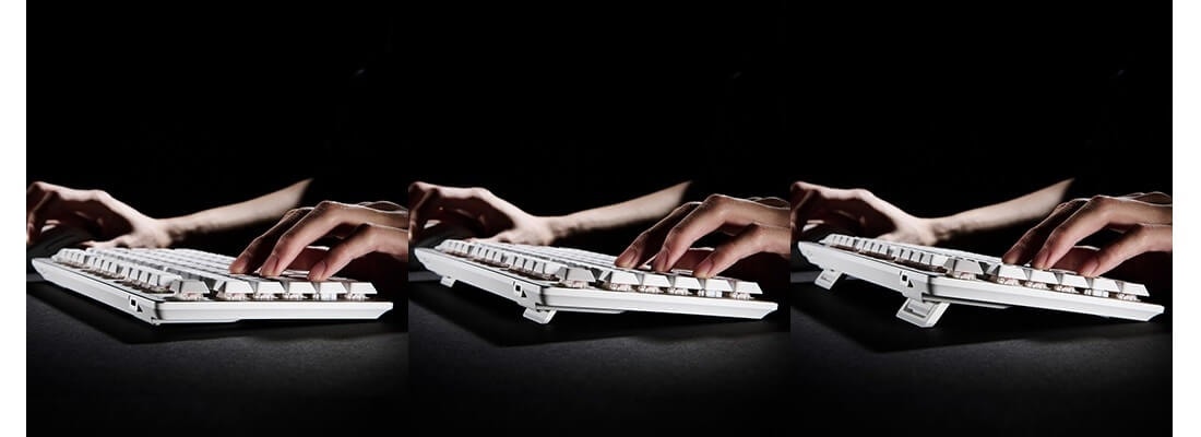 手の大きさや姿勢に合わせてキーボードの傾斜を6度・9度の2段階に変更できる、角度調整スタンドを搭載しています。