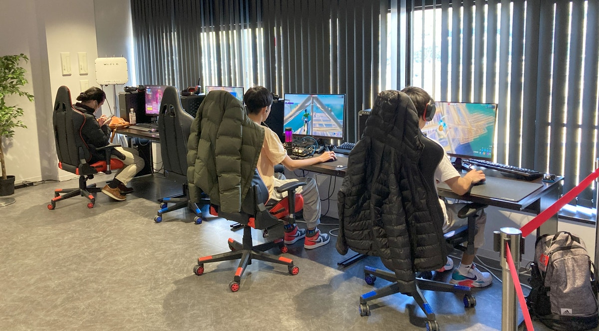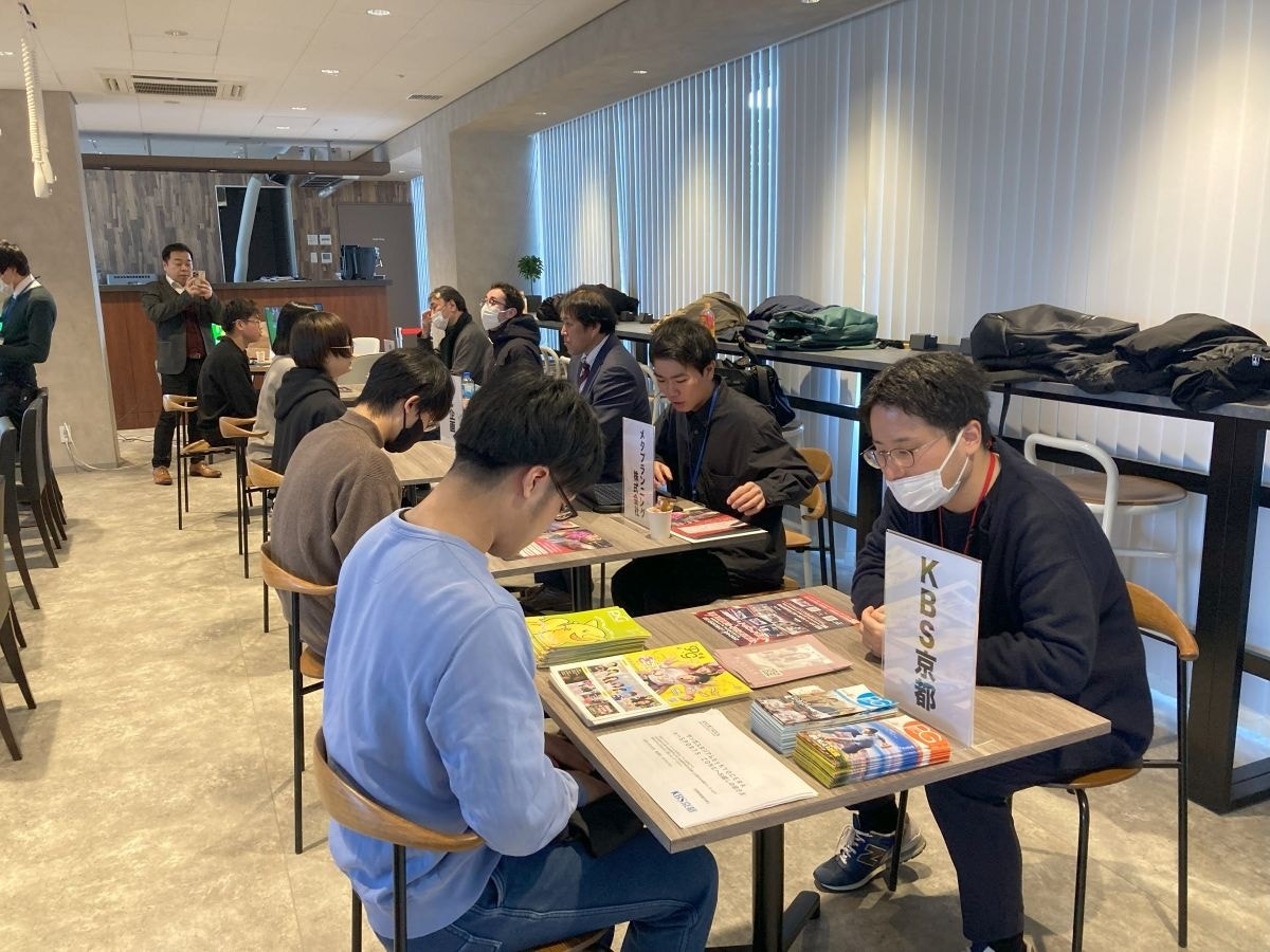 eスポーツ就労支援フェスでは、京都サンガスタジアム4階のeスポーツZONEの隣にあるコワーキングエリアで、eスポーツに携わる優秀な資質のある人材を活用したい京都府企業と、学生さんたちとの面漸・相談会などが行われました