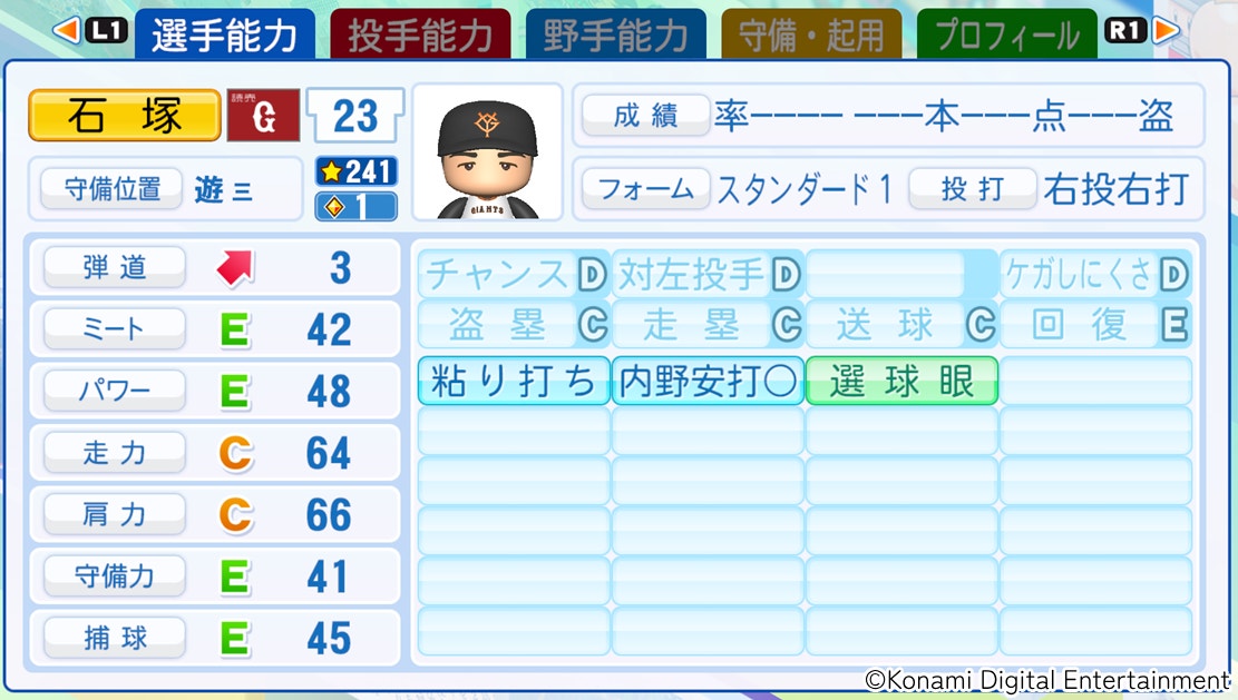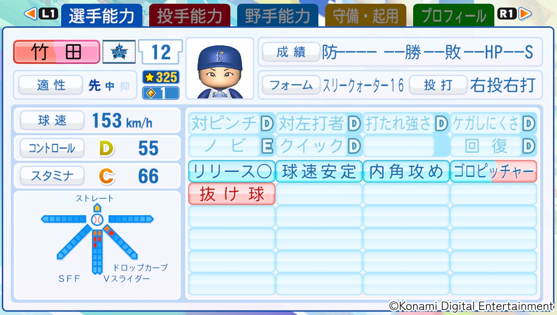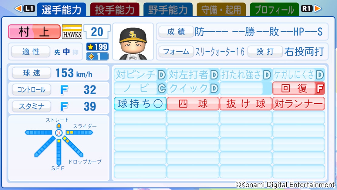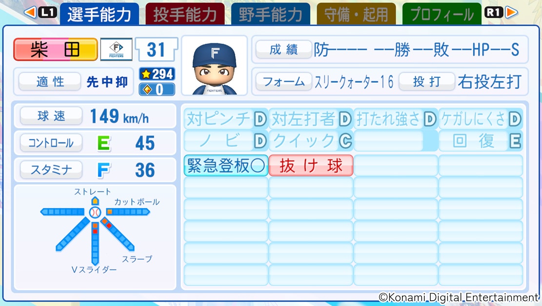 投球成績が走塁に、打撃成績がストレートのノビに好影響を与える効果があります。