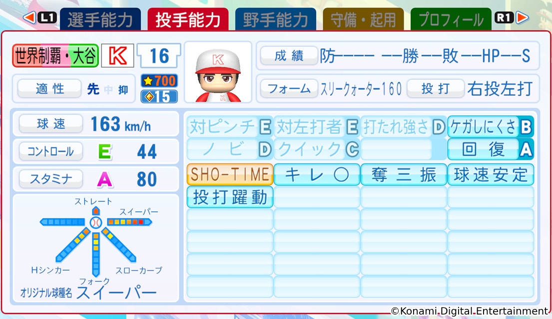 大谷選手は「SHO-TIME」、「Big Fly」といった専用の新特殊能力があり二刀流が楽しめる。