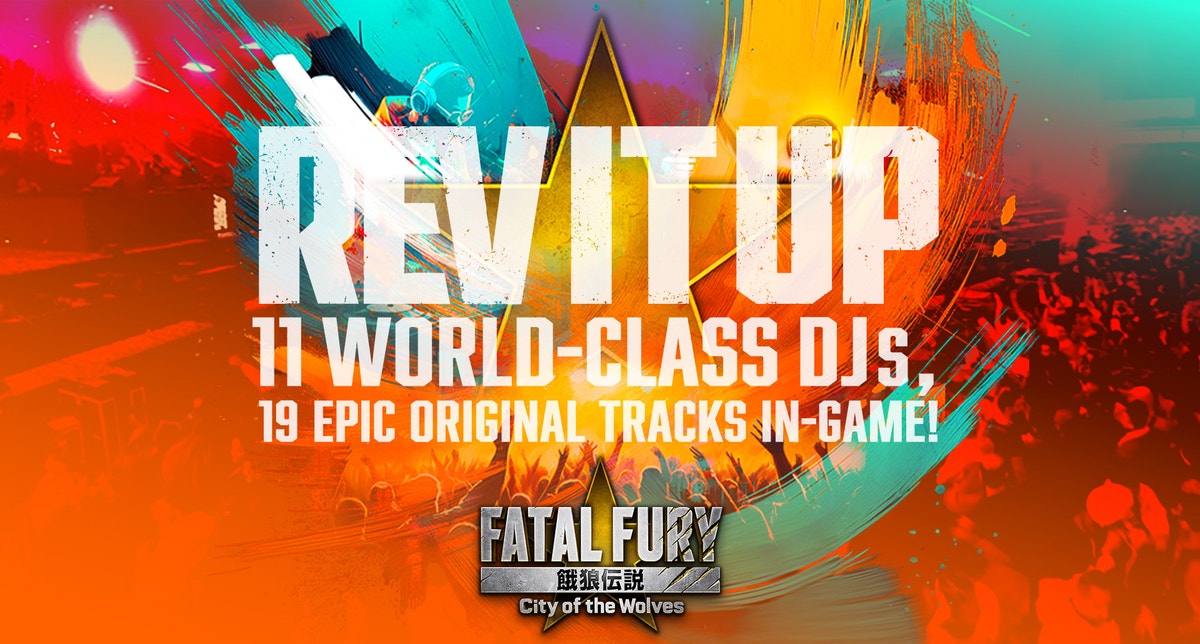 『餓狼伝説 City of the Wolves』と人気DJ 11名のコラボレーションが実現!「REV IT UP」をキーフレーズに、本作の世界観やキャラクターをイメージしたオリジナル楽曲19曲をステージBGMとして収録。ゲームと音楽の融合により、白熱の対戦を盛り上げます。さらに本作のJUKEBOX機能を利用すれば、プレーリストの作成や各種モードのBGMを好きな曲にカスタマイズすることも可能です。本コラボレーションにおけるスーパーバイザーとして、独自の音楽性と世界的な影響力で知られる人気アーティストのサルバトーレ・ガナッチ氏を起用。この取組みにおけるキュレーションとコーディネイトにおいて重要な役割を果たしているだけでなく、自身もオリジナル楽曲を提供しています。
