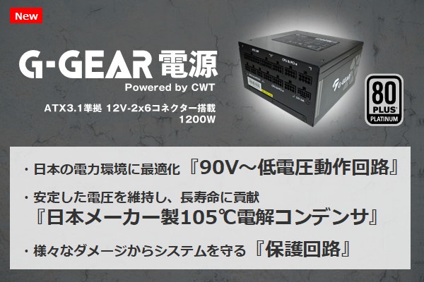 高品質電源ユニット『G-GEAR電源 1200W』標準搭載