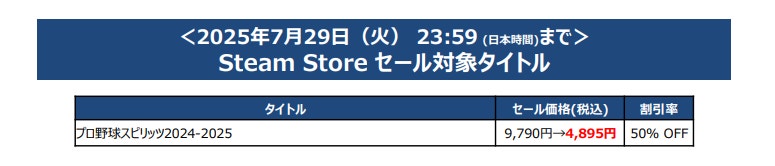 『パワフルプロ野球2024-2025』と『プロ野球スピリッツ2024-2025』も半額
