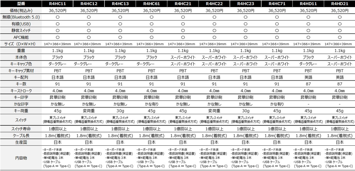 「R4キーボード」は、20機種中16機種が日本語配列、4機種が英語配列として発売します。機能については、高速入力を可能にするAPC機能を従来の4段階から22段階への対応、また、キーマクロ対応などユーザーのニーズに合わせてより細かい設定が可能となっています。