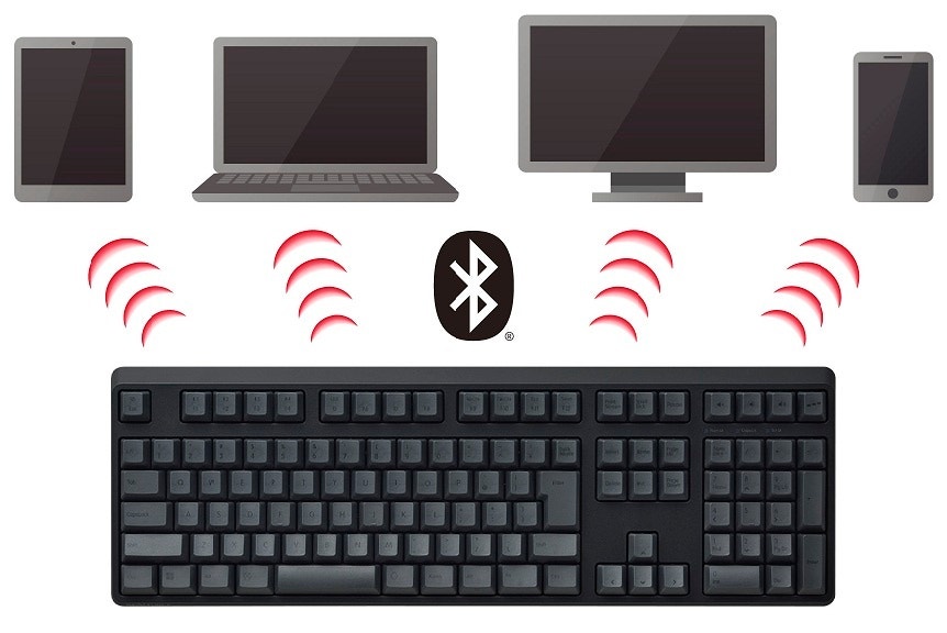 デスクトップパソコンだけなくスマートフォンやタブレットPCなど最大4つの機器とマルチペアリングで接続して随時切り換える事が可能です。また、付属の着脱式USBケーブル(USB Type-C ⇔ USB Type-A)を使用し、USB接続のキーボードとしても使う事ができます。 ※USBケーブルを無線接続の給電用として使用することも可能です。