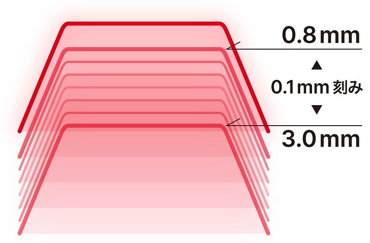 R4キーボードでは、APC機能(アクチュエーションポイントチェンジャー)を搭載しています。専用ソフトウェアで22段階(0.8~3.0mm)に設定が可能です。これにより、高速入力を必要とするタイピングでは0.8mmの浅めにアクチュエーションポイントを設定したり、間違えて押しやすいキーは深めの3.0mmに設定したりすることで誤入力の抑止効果が期待できます。また、設定はキーボードオンボードメモリーに4つまで保存してワンタッチで切り換えられます。