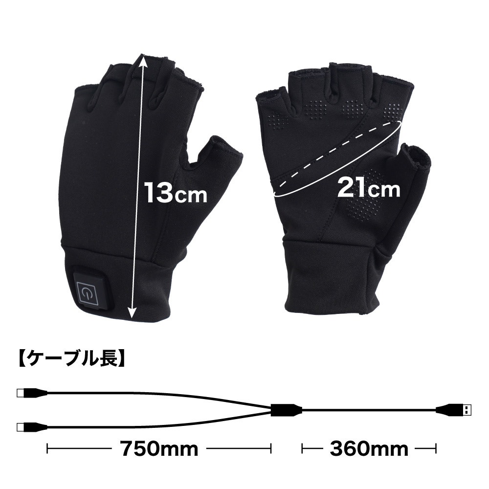 本製品は、ヒーターを搭載した伸縮性がある素材を使用したあったか手袋です。USB給電式。手首のボタン部のUSB差込口に付属のケーブルを差し込み、モバイルバッテリーなどにつなげればOK。