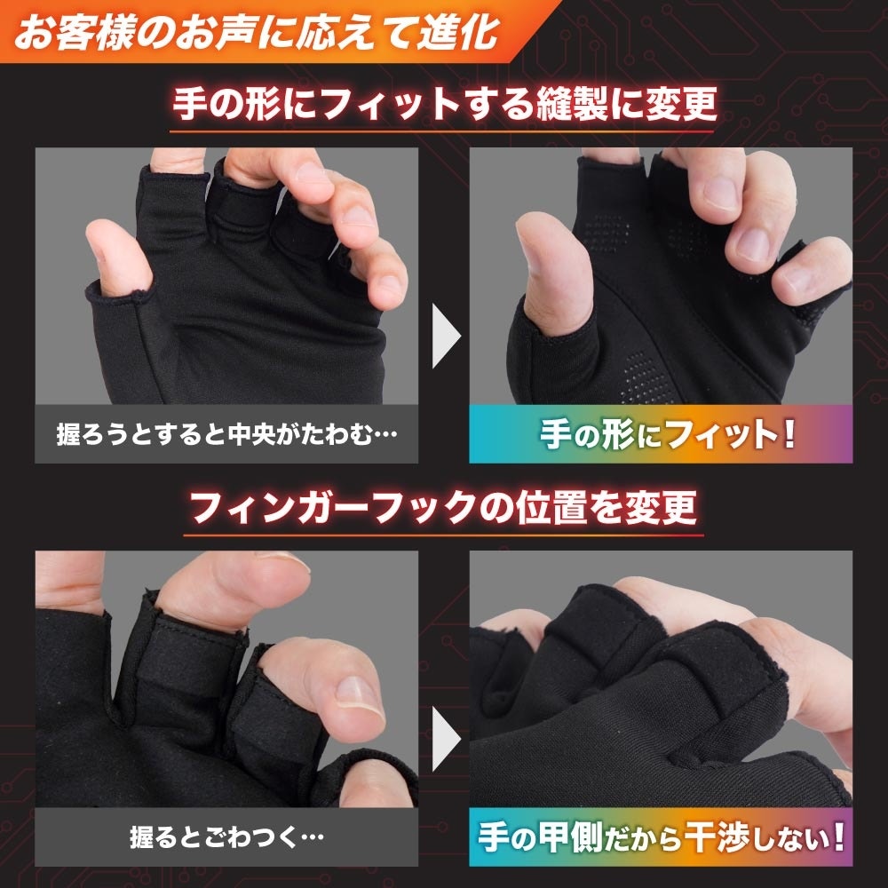 今年は縫製を変更し、より手に自然とフィットする作りに。また、滑り止めを追加してコントローラーも握って操作しやすく進化させました。