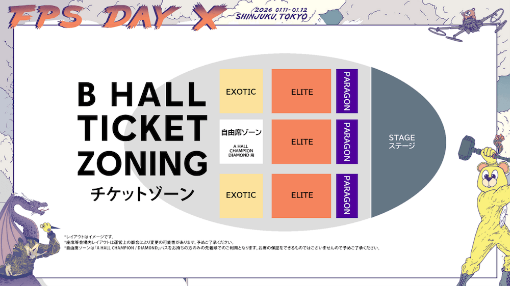 イベント両日にご来場いただける 2Day パス、イベント1日目(1/11)または2日目(1/12)のみを対象とした 1Day パスが発売されます。ホール外で実施されるアクティビティおよび物販などは、上記パスのいずれかをお持ちの方すべてがお楽しみいただけます。